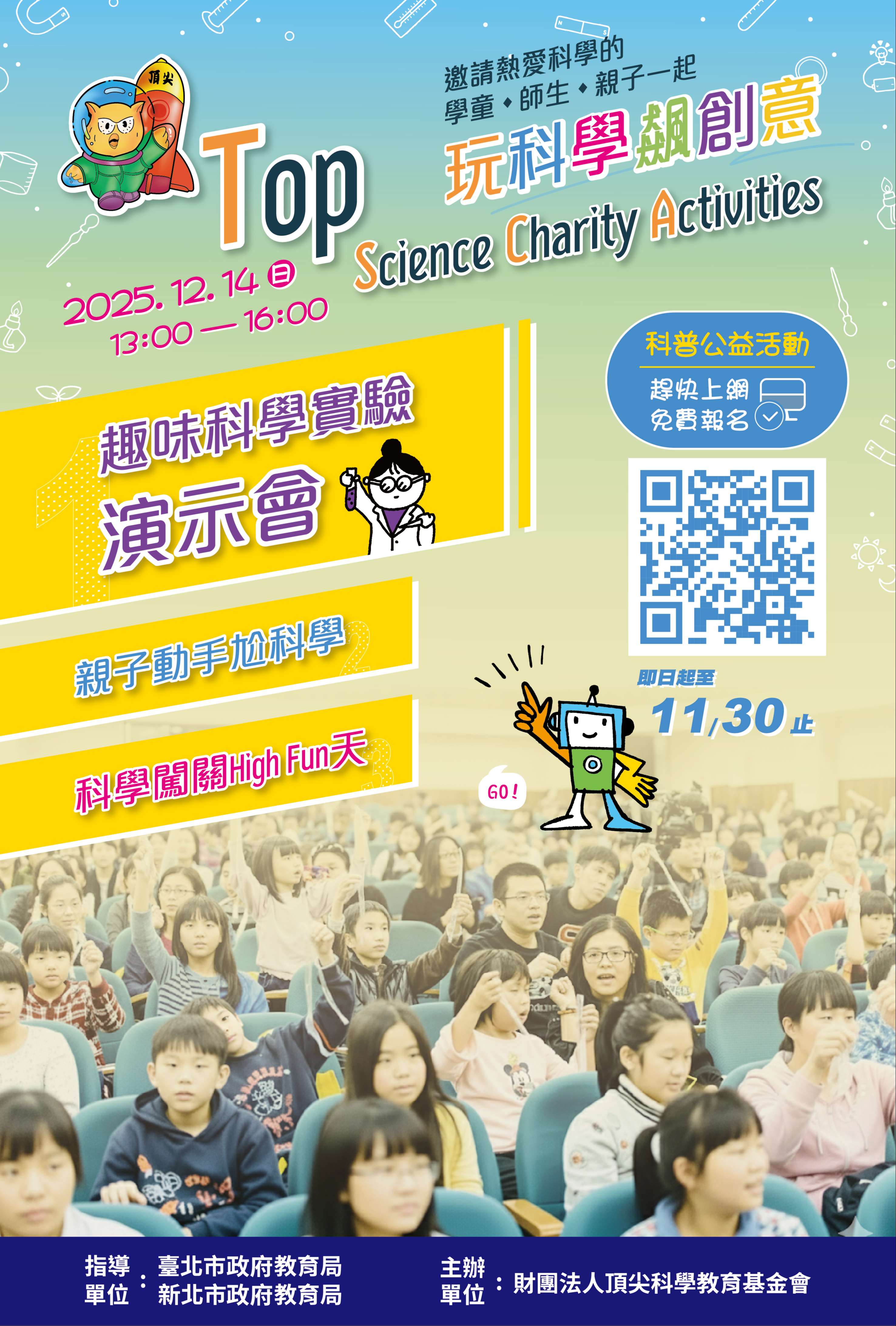 三、趣味科學實驗演示會與親子動手尬科學活動報名截止日期:即日起至11月30日止。