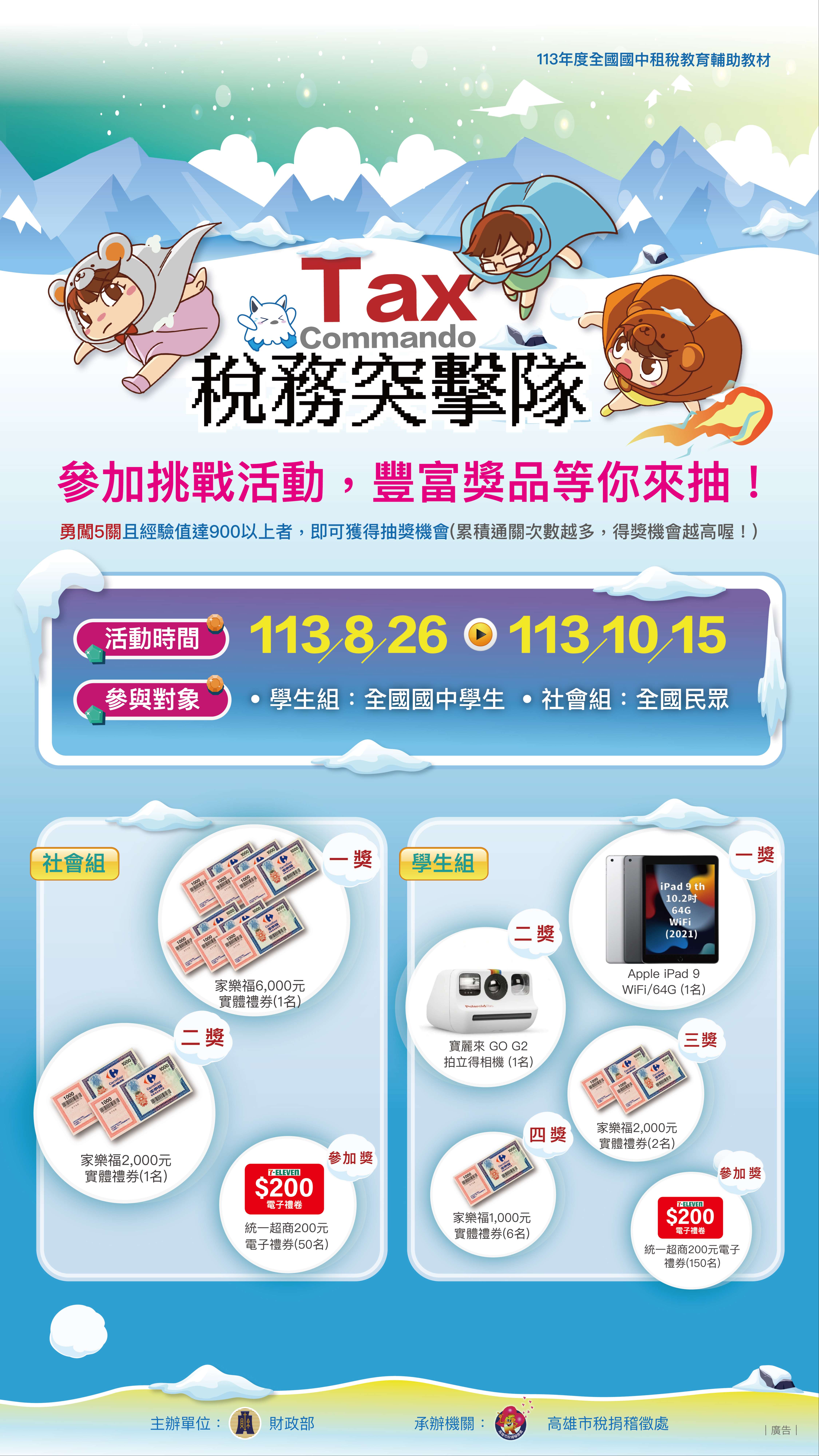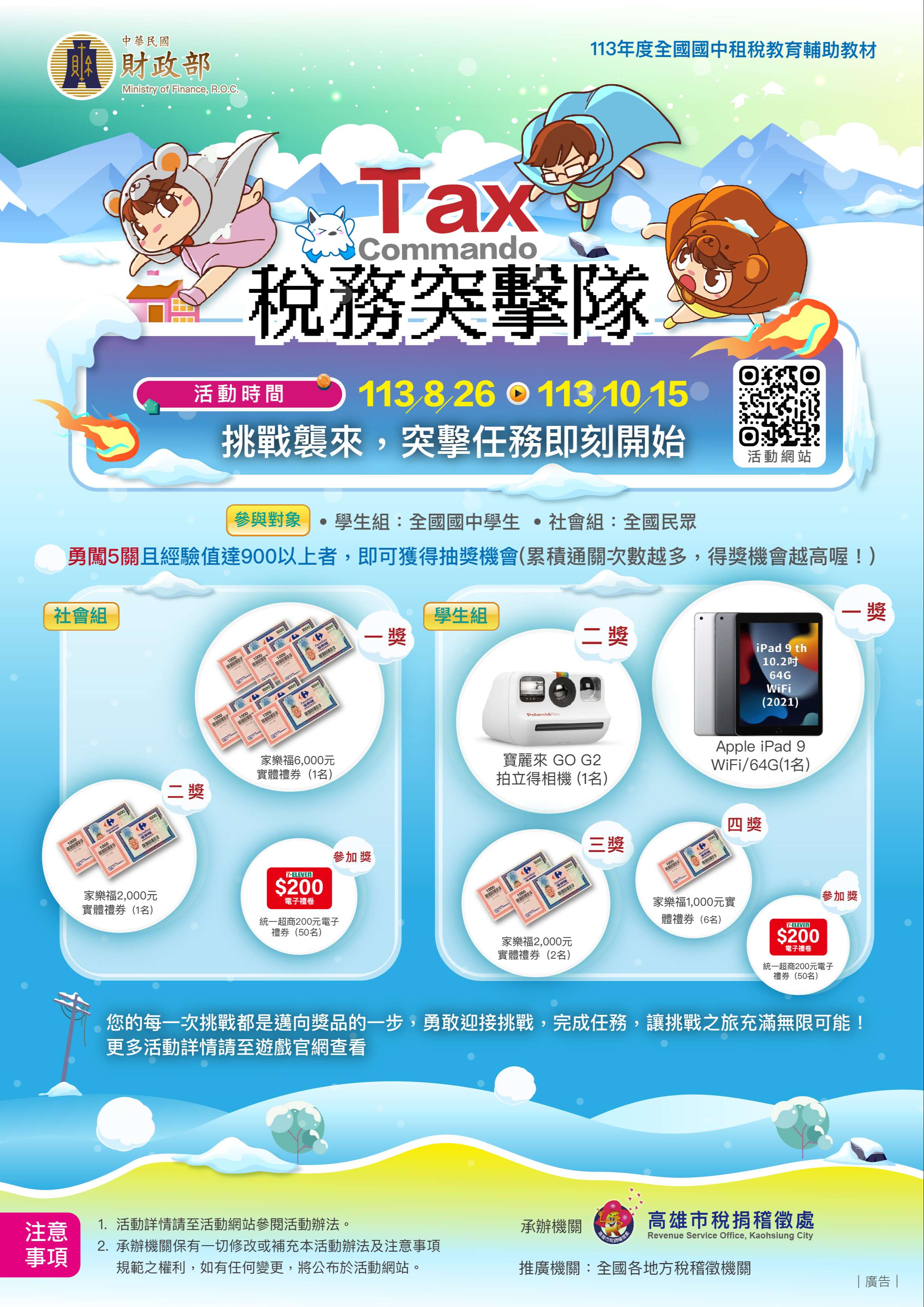 五、詳情請至活動網頁(https://www.113taxgame.com.tw)查 詢。
