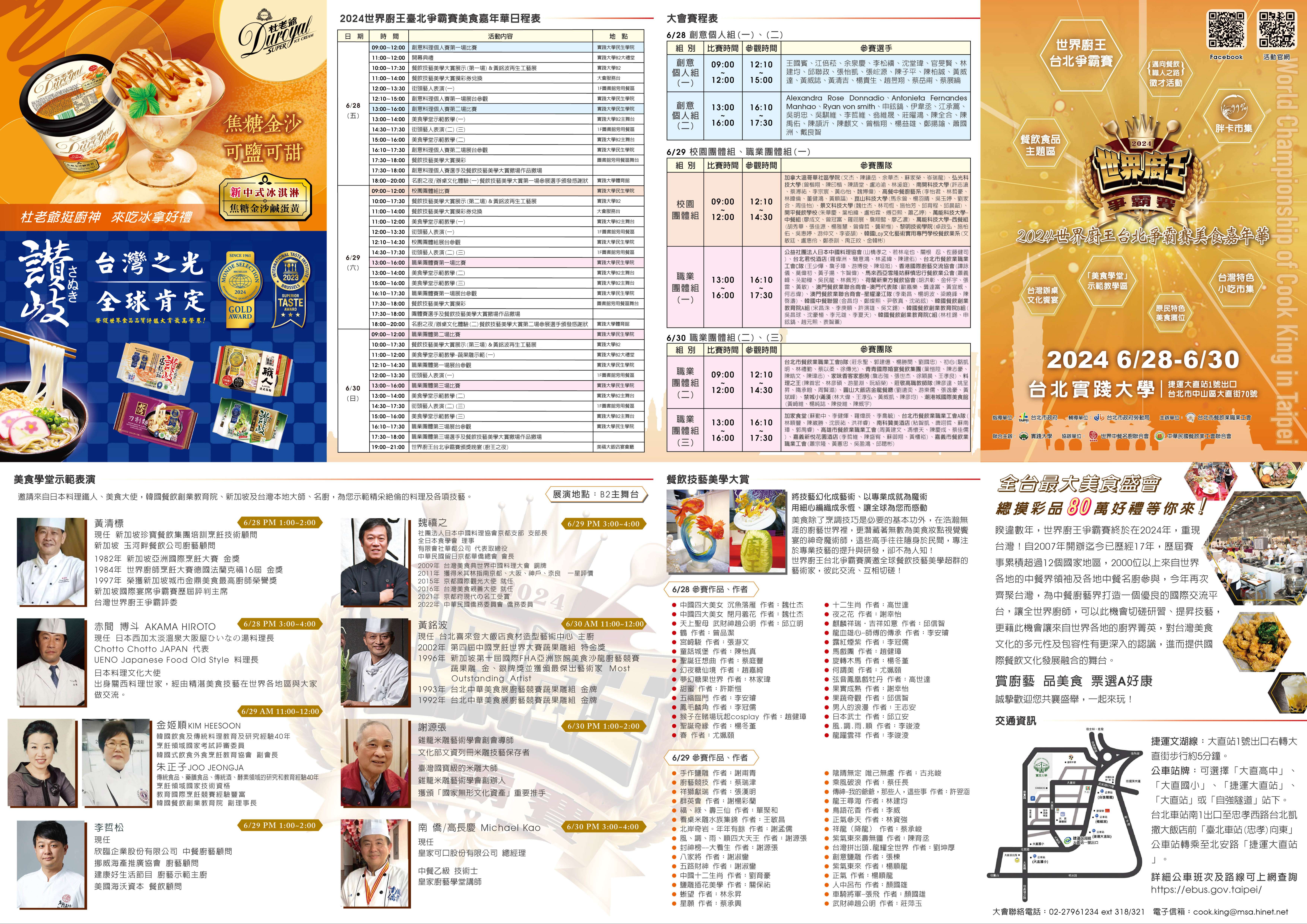 「2024世界廚王爭霸賽暨美食嘉年華」,該活動 訂於113年6月28日至6月30日假實踐大學辦理。