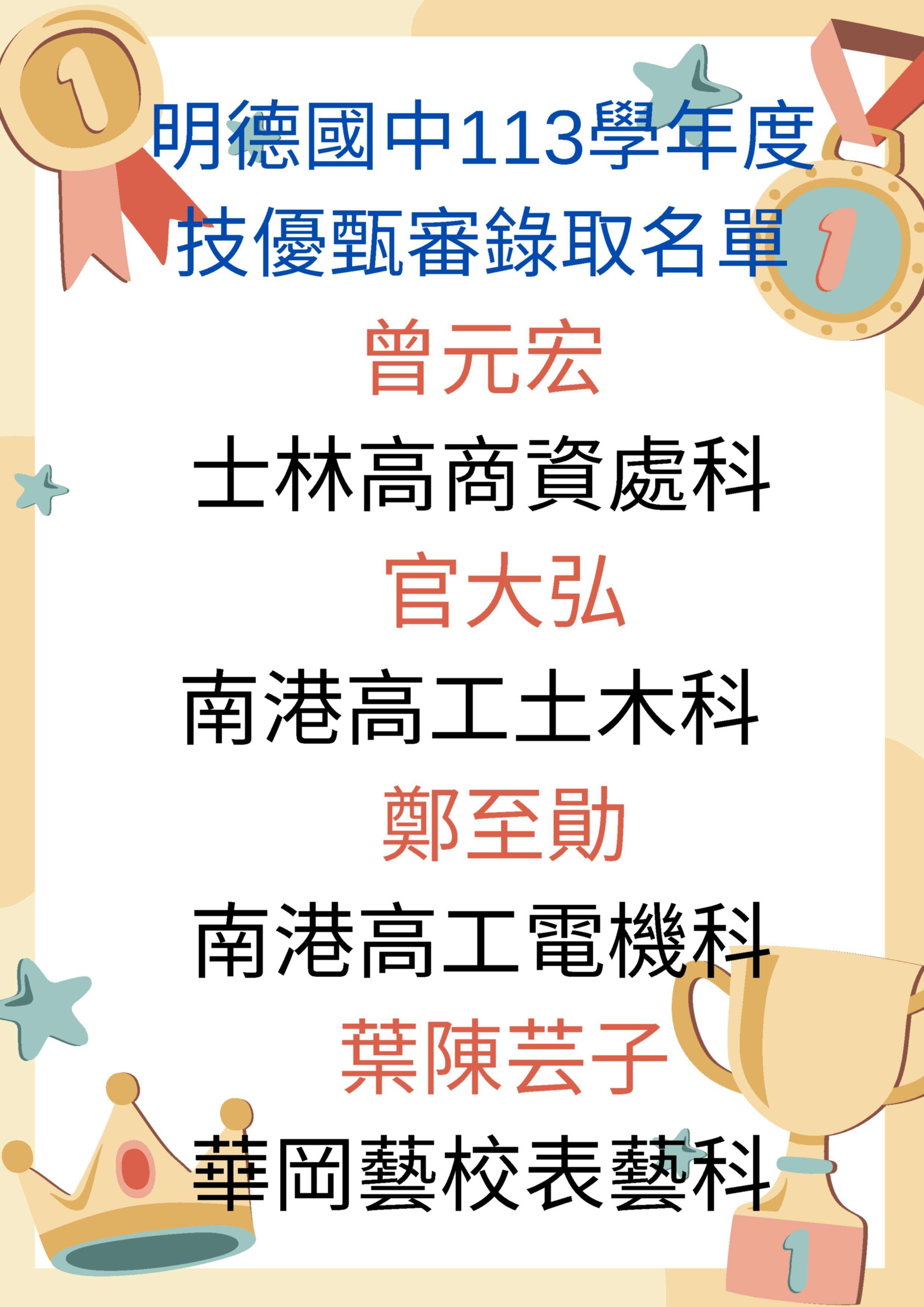 本校【基北區技優甄審榜單】