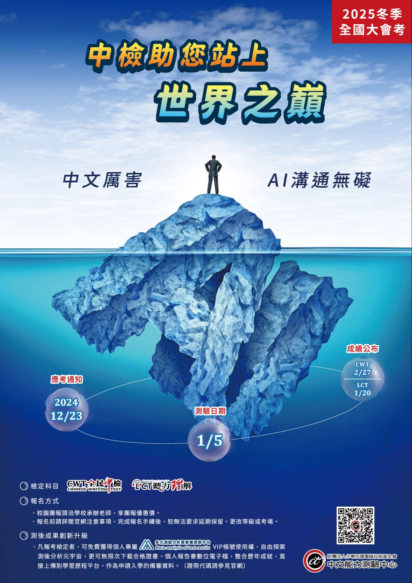 為鼓勵學生提昇語文素養,本中心除低收入戶學生得以半 價參與之外,亦辦理考生獎學金及菁英獎,每年均有近千 人受惠。本次活動擇臺北、桃園、新竹、臺中、彰化、臺 南、高雄等七考區盛大辦理,詳細考場資訊於官網公告。