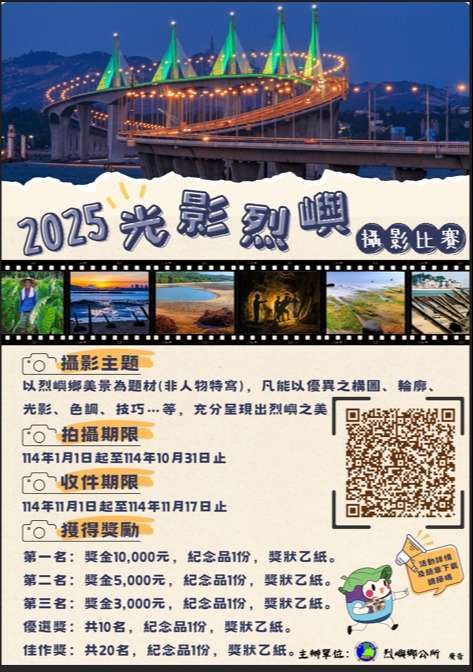 活動時間: (一)拍攝期限:114年1月1日起至114年10月31日止。 (二)收件日期:114年11月1日起至114年11月17日止。( 三)活動訊息請逕上官網https://www.kinmen.travel/zh-tw /event-calendar/details/3958查詢