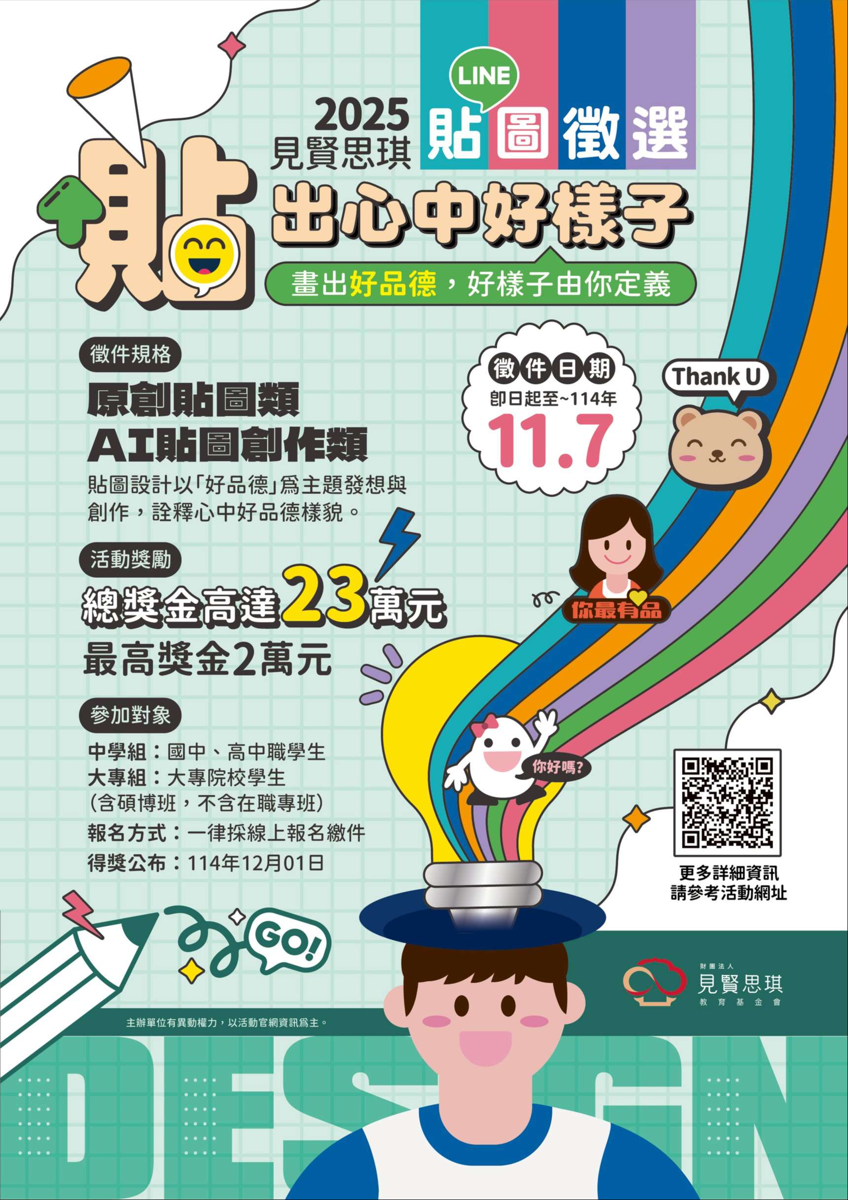 有關財團法人見賢思琪教育基金會辦理114年度「貼出心中好樣子」貼圖徵選活動事宜。