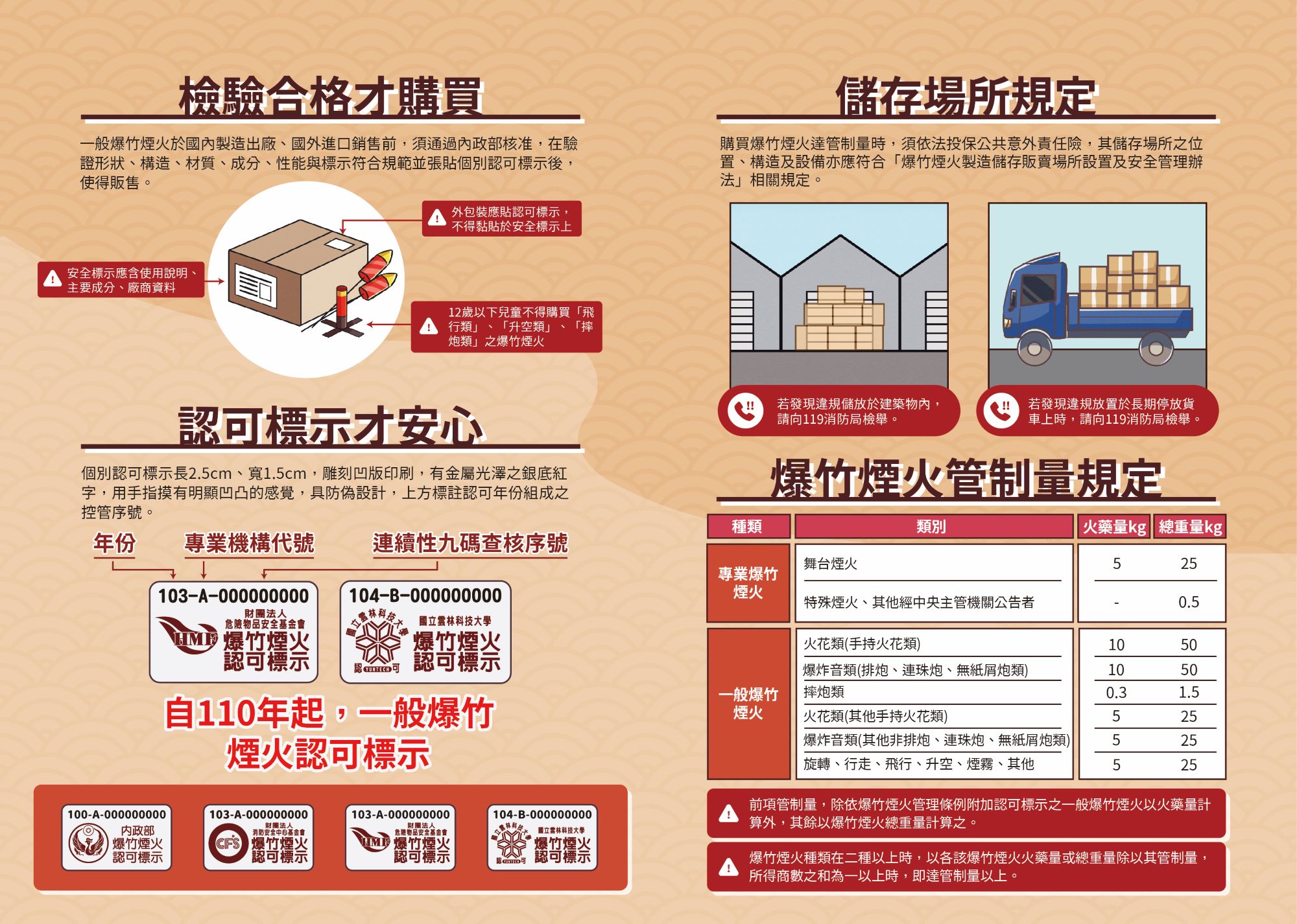 三、有關兒童(未滿12歲)施放爆竹煙火規定部分,依「爆竹 煙火管理條例」第13條第1項規定:「父母、監護人或其他 實際照顧兒童之人於兒童施放一般爆竹煙火時,應行陪 同。」;另禁止兒童施放飛行類(如沖天炮)、升空類 (如空中美人)及摔炮類等一般爆竹煙火。